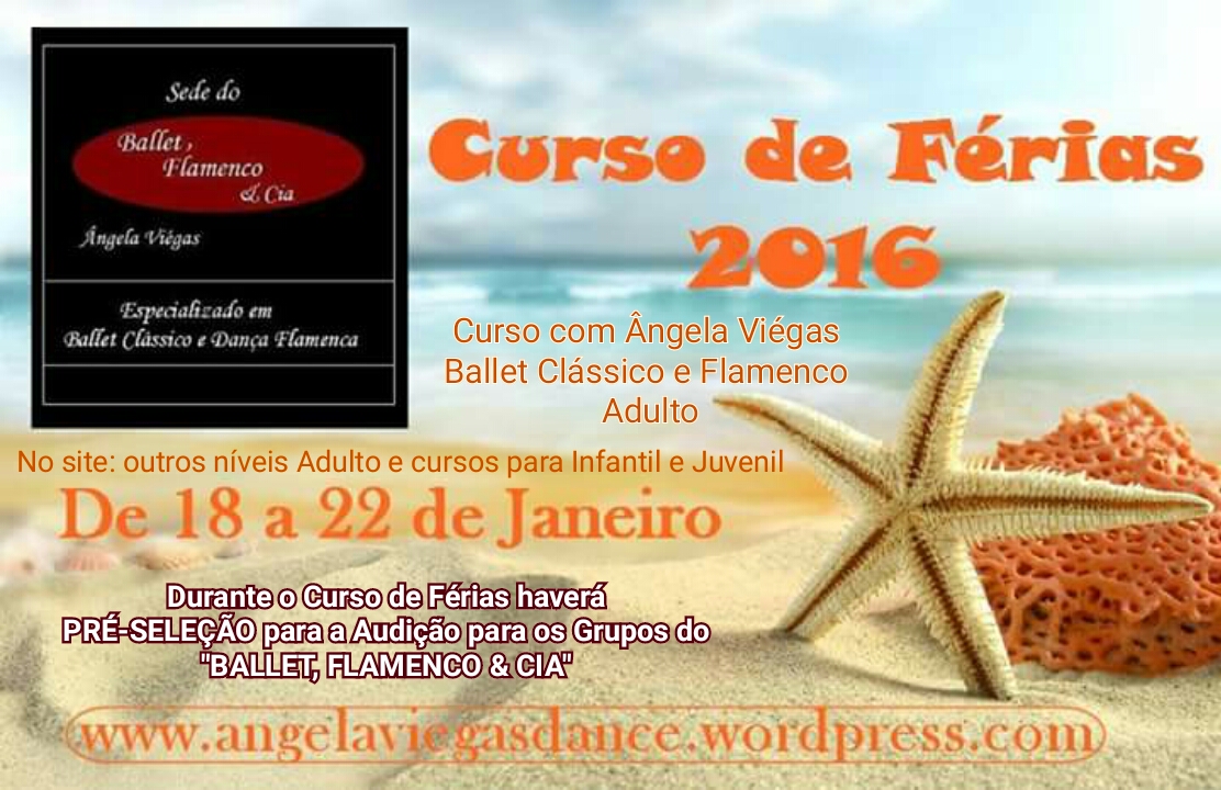 ▫ÂNGELA VIÉGAS ▫ Bailarina Clássica e Flamenca (DRT – 25.272) || Coreógrafa do "Ballet, Flamenco & Cia" || Diretora e Professora do "Ballet, Flamenco & Cia" | Centro de Movimento e Criação || Praticante de Ashtanga Yoga – Contatos: angelaviegasdance@hotmail.com ▫ "BALLET, FLAMENCO & CIA" ▫ Especializado em Ballet Clássico e Dança Flamenca – Contatos: ballet.flamenco.cia@hotmail.com ; Tel.: (21) 99658 0170 – Rio de Janeiro, RJ